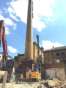 Im Rahmen des Umbaus der historischen Bötzowbrauerei in Berlin wurden umfassende Maßnahmen zur Baugrubensicherung durchgeführt. Die Arbeiten umfassten die Planung und Umsetzung einer technisch anspruchsvollen Sicherungslösung, um die umliegenden denkmalgeschützten Bestandsgebäude zu schützen und gleichzeitig die Voraussetzungen für die Errichtung neuer Gebäudestrukturen zu schaffen.