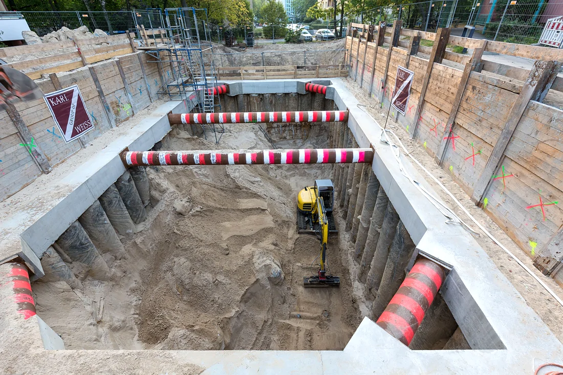 Im Zuge der Sanierung des Kanalnetzes errichtete die Firma KARL WEISS Technologies die Baugrube sowie die Anschlüsse für ein Regenüberlaufbauwerk in Berlin Friedrichshain.